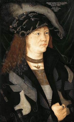 | Keywords: Jacopo de' Barbari (attrib.) - Ritratto di Heinrich, duca di Mecklenburg.jpg  attributed to Hendriks mantel heeft een patroon van strijdbijlen en boomstammen ook aan zijn ketting hangt een bijl Toch was Hendriks bijnaam ˜de Vredeklare ™ Zijn hoed is versierd met struisveren parelsnoeren en koorden met gouden ringen Het komt wat excentriek over maar Hendriks uitdossing was destijds in de mode bij de Duitse adel 1507 Oil on panel cm 59 3 37 5 Institution Mauritshuis accession number 898 object history 1685 Heidelberger Schloß <br> Lord Cromwell Misterton Hall Lutterworth Leicestershire<br> M C Mège Paris <br>1929 kunsthandel B Houthakker Amsterdam <br>1929-1940 J C H Heldring Oosterbeek<br>after 10 may 1940 kunsthandel B Houthakker Amsterdam<br> 1940-10-16 kunsthandel F W H Hollstein Amsterdam<br>1940 kunsthandel Jacques Goudstikker/Alois Miedl<br> Galerie Almas München; H Hoffmann München<br>1940 Reichskanzlei Berlin <br>Adolf Hitler Führermuseum Linz<br> ProvenanceEvent 1951-1960 loan Stichting Nederlands Kunstbezit inv nr NK 2547 credit line HENRICV REFERO DVCE MEGAPOLESE / MAGNI FILIVM ANNOS NATV / OCTO ET VIGITI top right </br> M D VII / ANATALI CRISTIAO / CALENDIS / MAIS date top right http //www mauritshuis nl/nl-nl/verdiep/de-collectie/kunstwerken/portret-van-hendrik-v-14791552-hertog-van-mecklenburg-898/ Mauritshuis online collection http //en gallerix ru/album/Mauritshuis/pic/glrx-3482 gallerix ru PD-old-100 DEFAULTSORT Barbari Heinrich of Mecklenburg Jacopo de' Barbari Italian paintings in the Mauritshuis Henry V Duke of Mecklenburg Drapery in portrait paintings Portrait paintings of men wearing berets Rings in art Sonderauftrag Linz 16th-century oil portraits of men at half length 1507 portrait paintings |