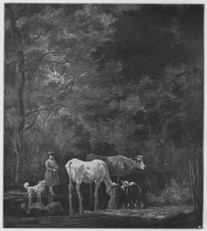 | Keywords: Jahrhundertausstellung 1906 KatNr. 0852.jpg Artwork Creator Wilhelm von Kobell Die Furt Oil Canvas cm 141 124 Kgl Gemäldegalerie Kassel lt Quelle self scanned from own book Vorstand der Deutschen Jahrhundertausstellung Herausgeber žKatalog zur Ausstellung deutscher Kunst aus der Zeit von 1775 “1875 in der Königlichen Nationalgalerie Berlin Verlag F Bruckmann AG München 1906 2 Bände 1798 PD-old-100-1923 Other versions Wilhelm von Kobell Jahrhundertausstellung deutscher Kunst 1906 ImageNote 1 34 17 1755 2008 1827 2046 2 Vor dem grünbraunen Dunkel der Bäume und dem dunkelblauen Grund leuchtet das weiße Fell der saufenden Kuh die in den beschatteten Teilen ein helles Ockergelb zeigt In dem beleuchteten Rücken der Ziege ist das Weiß bläulich gestimmt Die hintere Kuh lehmbraun mit gelblichem Weiß in dem beleuchteten Teil des Kopfes Das Mädchen in brauner Fleischfarbe braunem Rock mit dunklen Falten und graublauer Jacke In dem Hut Blau und Schwarz Der Hund weißbelichtetes Gelbbraun “ Bez unten links eingekratzt Wilhelm Kobell 1798 ImageNoteEnd 1 |