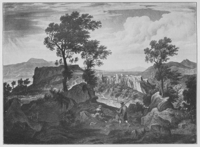 | Keywords: Jahrhundertausstellung 1906 KatNr. 0880.jpg Artwork Creator Joseph Anton Koch Die Serpentara bei Olevano Oil Canvas cm 56 79 Anton v Schuhmacher Innsbruck lt Quelle self scanned from own book Vorstand der Deutschen Jahrhundertausstellung Herausgeber žKatalog zur Ausstellung deutscher Kunst aus der Zeit von 1775 “1875 in der Königlichen Nationalgalerie Berlin Verlag F Bruckmann AG MĂĽnchen 1906 2 Bände 1820 PD-old-70-1923 Other versions Joseph Anton Koch Jahrhundertausstellung deutscher Kunst 1906 ImageNote 1 18 16 1540 1121 1579 1157 2 Braungraue Felsen grĂĽnbraune Bäume Der Hirt in Braun und Blau mit grauem Korb die Frau in Rot und Blau Im Hintergrund graublaue Berge Blauer Himmel mit grauen weiĂź und braun gesäumten Wolken “ Bez unten rechts auf einem Stein braun J K “ 1820 ImageNoteEnd 1 |