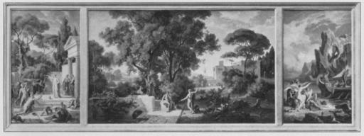 Keywords: Jahrhundertausstellung 1906 KatNr. 1343.jpg Artwork Creator Friedrich Preller der Ältere Farbenskizzen zur Odyssee Oil Canvas mittlere cm 40 67 seitliche cm 40 24 Frau von Eichel-Streiber Eisenach lt Quelle Vorstand der Deutschen Jahrhundertausstellung Herausgeber žKatalog zur Ausstellung deutscher Kunst aus der Zeit von 1775 “1875 in der Königlichen Nationalgalerie Berlin Verlag F Bruckmann AG München 1906 2 Bände ; self scanned from own book 1864/65 PD-old-70-1923 Other versions Friedrich Preller der Ältere Jahrhundertausstellung deutscher Kunst 1906 ImageNote 1 17 12 1949 712 1986 744 2 Das Fleisch in mehr oder weniger gebräuntem Rosa Die Kostüme vorwiegend rosa zuweilen mattgelb und mattblau Die Felsen oft im selben Rosa auch in grauen und graubraunen Tönen Ebenso die Architektur Die Bäume grünlichgrau und braungrün Das Wasser türkisblau oder grünlichblau Der Himmel fast ausnahmslos türkisblau mit weißgrauen und rosabraunen Wolken “ Die Bezeichnung gewöhnlich unten links Monogramm F P zwischen 18 und 65 die Nrn 1345 “47 und 1350 datiert 1864 ImageNoteEnd 1 |
