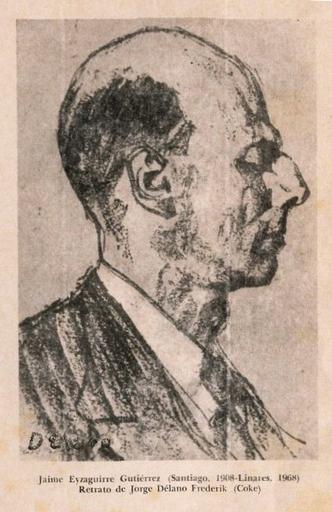 Keywords: Jaime Eyzaguirre.jpg es Dibujo a carbón en Miguel Gutierrez Jaime Eyzaguirre a Chilean lawyer and historian La Logia Lautarina y Otros Estudios Sobre la Independencia de Chile Editorial Francisco de Aguirre SA Buenos Aires 1973 Jorge Délano Coke 1973-06-01 PD-AR-Photo Jaime Eyzaguirre |