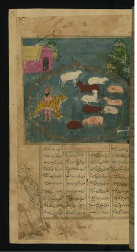 | Keywords: Jalal al-Din Rumi, Maulana - A Peasant Carries a Lion - Walters W62661A - Full Page.jpg On this folio from Walters manuscript W 626 a peasant carries a lion from a compound in the darkness of night The peasant has mistaken the lion who had devoured one of his cows for one of the selfsame cows islamic 1663 1073 ink and pigments on thin laid paper probably Kashmiri cm 26 5 15 accession number W 626 61A 83731 Ibrahim date and mode of acquisition unknown round seal impression Ibrahim on front flyleaf iia Henry Walters Baltimore date and mode of acquisition unknown Walters Art Museum Henry Walters Acquired by Henry Walters place of origin Bharat Walters Art Museum license 2D Manuscript by Rumi Walters MS 626 Media contributed by the Walters Art Museum needs category review |