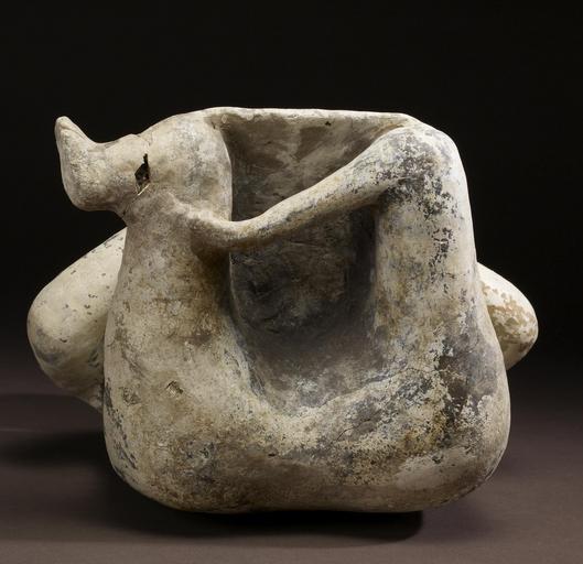 | Keywords: Jalisco - Mother and Child - Walters 20092015 - Bottom.jpg A mother proudly supports her male child who with her help stands securely on her lap She sits in the proper position for women legs folded to the side and concealed below her wrap skirt This cream-slipped sculpture was made during the culmination of the shaft tomb tradition in West Mexico when tombs were filled with spirited figural sculptures and decorated pottery vessels and the bodies of the deceased were dressed in fine clothing and jewelry of shell and stone The figures' cream-slipped surface and the restrained painting with which her dress is depicted are characteristic of an artistic substyle of the famous El Arenal Brown sculptural tradition of northern Jalisco Jalisco's pottery sculptors created a vast array of figures portraying all manner of social and political personages The figures are famous for the renderings of warriors brandishing shields and club-weapons and wearing helmets and armor of cotton batting Others portray members of the ruling elite majestically standing with staff of office in hand Shamans and healing rites were frequently depicted as were individuals afflicted with diseases or congenital deformities Portrayals of women were equally prominent the majority featuring either their political or spiritual shamanic powers or their magical ability to create life in the form of children This sculpture is a particularly informal yet stately expression of the procreative power of women and their lifelong calling as nurturers 100 BC-AD 200 earthenware white slip with black and red paint cm 37 2 30 9 23 2 accession number 2009 20 15 80170 Michael Robins date and mode of acquisition unknown John G Bourne 1990s mode of acquisition unknown Walters Art Museum Gift of John Bourne 2009 place of origin Jalisco Mexico Walters Art Museum license Pottery from ancient Jalisco in the Walters Art Museum Art of Mexico Media contributed by the Walters Art Museum needs category review Statues of mothers with children |