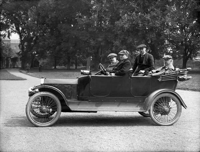 Keywords: james campbell percy jamescampbellpercy j.c. percy jcpercy publisher automobile car motor car motorcar august 1912 1910s poole collection poolecollection glass negative glassnegative a.h. poole ahpoole arthur henri poole arthurhenripoole w.f. peare wfpeare bill peare billpeare national library of ireland nationallibraryofireland blackandwhite monochrome vehicle outdoor black and white Dublin publisher James Campbell Percy (at the wheel), publisher of the Irish Motor News, Irish Cyclist and Irish Wheelman. As this is a Poole photo, this shot was probably taken somewhere in the South-East. Percy was involved in the founding of the Motor Cycle Union of Ireland in 1902, and the Irish Aero Club in 1909. He was also author of three books in our collections, one of which you can read online: Bulls, ancient and modern, 1912 (bulls in this instance are funny tall tales) Thanks to Bob Montgomery 2012 for confirming that James Campbell was also Lieutenant J. C. Percy, R.N.V.R., who was director of Naval Recruiting in Ireland. Date: 6 August 1912 NLI Ref.: P_WP_2389 Dublin publisher James Campbell Percy (at the wheel), publisher of the Irish Motor News, Irish Cyclist and Irish Wheelman. As this is a Poole photo, this shot was probably taken somewhere in the South-East. Percy was involved in the founding of the Motor Cycle Union of Ireland in 1902, and the Irish Aero Club in 1909. He was also author of three books in our collections, one of which you can read online: Bulls, ancient and modern, 1912 (bulls in this instance are funny tall tales) Thanks to Bob Montgomery 2012 for confirming that James Campbell was also Lieutenant J. C. Percy, R.N.V.R., who was director of Naval Recruiting in Ireland. Date: 6 August 1912 NLI Ref.: P_WP_2389 |
