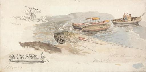| Keywords: James Ward - A Canopied Boat and Two Rowing Boats at a Jetty; Inset Left, a Pencil Study of the Tintern Livestock... - Google Art Project.jpg Inscribed in graphite lower left Tintern ; lower right Tintern Phasum Boat JWD RA from Monmouth Inscription _Marks Paul Mellon collector's stamp on verso Inscription _Signed_and_Dated Signed in graphite lower right JWD RA Not on View Graphite and watercolor on medium smooth cream wove paper jetty erosion protection work ferry landscape boat special url_id LgENZK0AIUQGaA PD-old-100-1923 1859 James Ward Google Art Project works by James Ward |