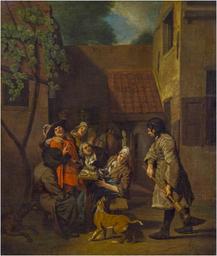 | Keywords: Jan Josef Horemans the Elder - Drinking men in the courtyard of an inn.jpg Drinking men in the courtyard of an inn oil on canvas 59 5 × 49 5 cm http //www imkinsky com/en/buying/list-of-prices-reached/59949-jan-josef-horemans/ century 18 Creator Jan Josef Horemans I At im Kinsky 107th auction lot 23 PD-old-100 Jan Josef Horemans I Merry companies in Flemish genre paintings | ||||