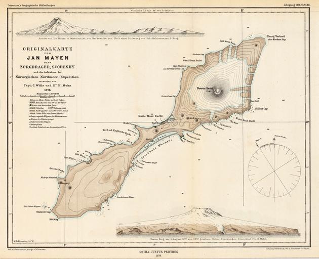 | Keywords: Jan-mayen-1878.jpg en map of Jan Mayen Island territory of Norway in the North Atlantic Ocean in Petermann's Geographische Mitteilungen https //sawalshexpeditions files wordpress com/2015/07/jan-mayen-1878 jpg Carl Fredrik Wille and Henrik Mohn after<br />Cornelis Gisbert Zorgdrager and William Scoresby 1878 Old maps of Jan Mayen 1878 maps Petermanns Geographische Mitteilungen Henrik Mohn Cornelis Gijsbertsz Zorgdrager PD-old-100 | ||||