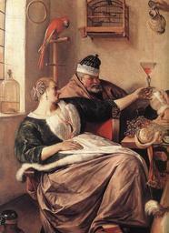 | Keywords: Jan Steen - The Artist's Family (detail) - WGA21746.jpg Artwork Creator Jan Steen The Artist's Family ca 1663 Oil on canvas Institution Mauritshuis object history credit line accession number WGA link 21746 http //www wga hu/art/s/steen/page2/family_d jpg http //www wga hu/html/s/steen/page2/family_d html PD-old-100 <gallery> </gallery> painting genre Dutch 1651-1700 Genre paintings by Jan Steen 1665 The Way You Hear It Detail Paintings by Jan Steen in the Mauritshuis 1665 The Way You Hear It Detail 17th-century oil on canvas paintings WGA form painting WGA type genre WGA School Dutch WGA time period 1651-1700 Fur garments in art Pouring in art 1663 paintings Bird cages in art Men and women in art Parrots in paintings People with parrots in art |