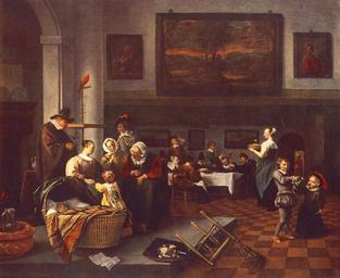 | Keywords: Jan Steen The Christening.jpg Artwork creator Jan Steen title The Christening So de Oude songen so pypen de Jogen 1669 oil on canvas unknown Other versions PD-old-100 ImageNote 1 859 93 120 141 1000 819 2 The painting Peeckelhaering by Frans Hals ImageNoteEnd 1 Jan Steen 17th-century paintings location missing 1669 genre paintings 17th-century oil paintings of people 17th-century paintings of birds 17th-century paintings of dogs Feasts in art Kooikerhondje Malle Babbe Paintings of humans with animals |