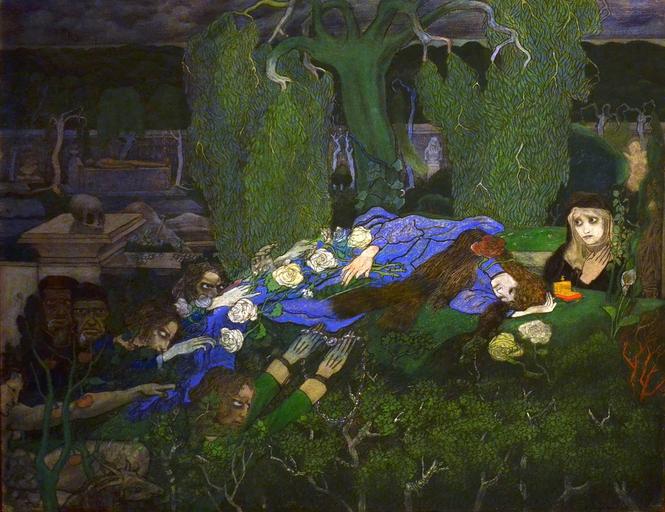 Keywords: Jan Toorop Prowlers 1892 28102016.jpg en Prowlers Rôdeurs black chalk pencil pastel wax crayon heightened with white gold paint on card May-June 1892 by Jan Toorop Exhibition Jan Toorop in the Villa Stuck in Munich 2016 ; from the Kröller-Müller Museum 2016-10-28 16 30 12 own Vassil other versions cc-zero Drawings by Jan Toorop Symbolist paintings Kröller-Müller Museum Cemeteries in art Willows in art |