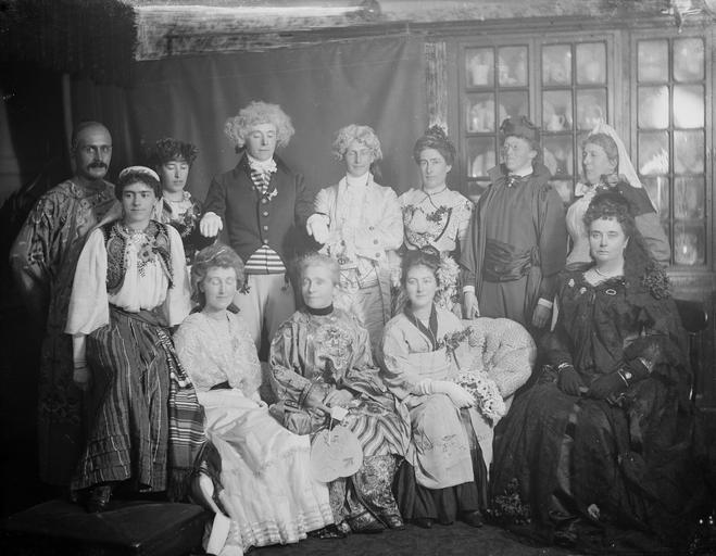 | Keywords: fancy dress fancydress ball curraghmore house curraghmorehouse portlaw ireland munster de la poer beresfords delapoerberesfords de la poer delapoer beresford family costumes big house bighouse friday january 1902 1900s poole collection poolecollection glass negative glassnegative a.h. poole ahpoole arthur henri poole arthurhenripoole waterford national library of ireland nationallibraryofireland people groupshot blackandwhite monochrome black and white Group shot of guests at a Fancy Dress Ball held at Curraghmore House, Portlaw, Co. Waterford. Particularly like the gentleman who seems to be focussed on levitating the two ladies seated in front of him! Date: Friday, 10 January 1902 NLI Ref.: PWP370 Group shot of guests at a Fancy Dress Ball held at Curraghmore House, Portlaw, Co. Waterford. Particularly like the gentleman who seems to be focussed on levitating the two ladies seated in front of him! Date: Friday, 10 January 1902 NLI Ref.: PWP370 |