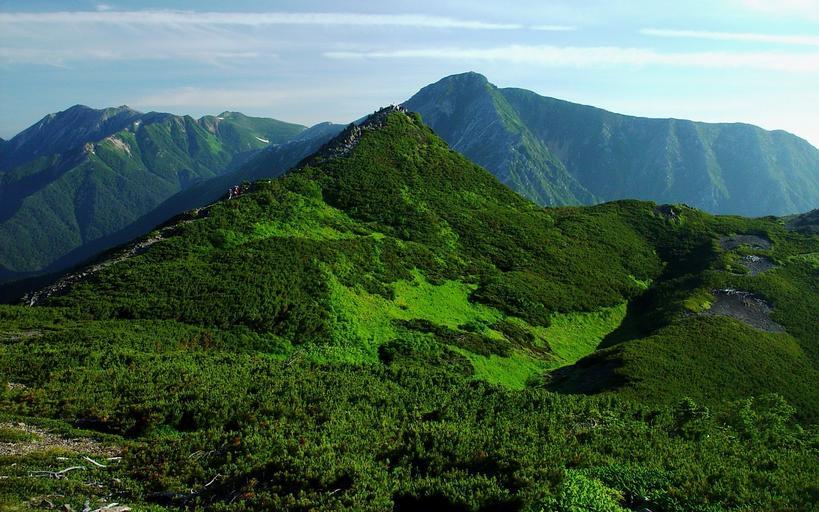 Keywords: japan landscape mountains forest trees woods valley ravine gorge grass nature outside summer spring sky clouds country countryside scenic vista