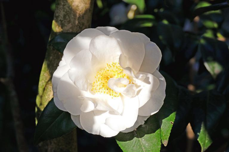 Keywords: japanese camellia white large blooms bush tree nature plant winter spring flower bloom beautiful tea tree plant