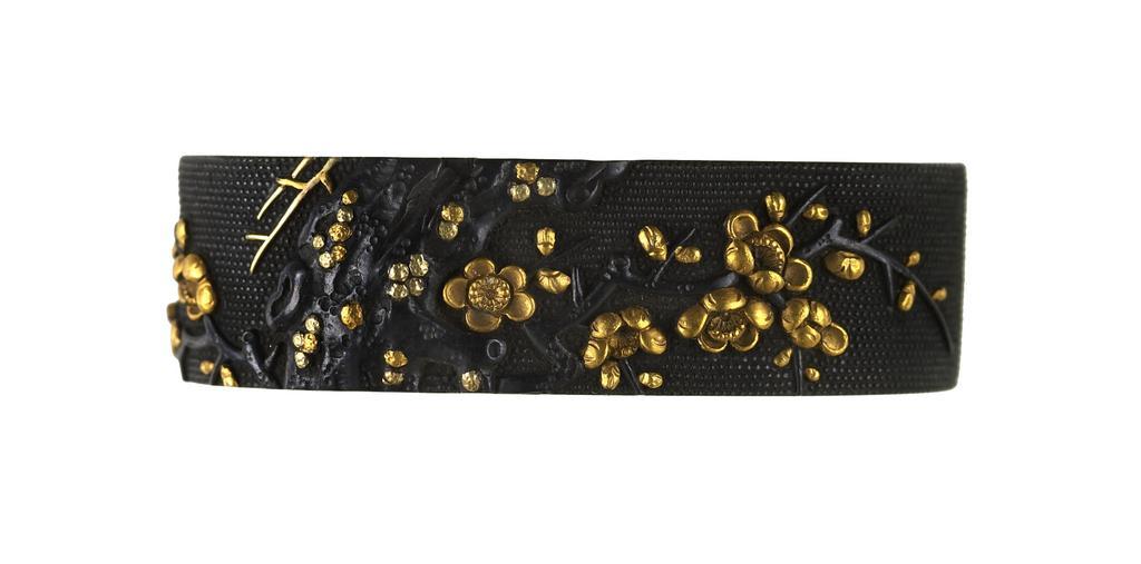 | Keywords: Japanese - Fuchi with Plum Tree and Bird - Walters 51996.jpg  On the front is a plum tree in bloom A bird is on the reverse Both are emblems of spring This is part of a set with Walters 51 997 date shakudo copper gold cm 3 7 accession number 51 996 18979 William T / Henry Walters Collection Baltimore date and mode of acquisition unknown Walters Art Museum Henry Walters Acquired by William T or Henry Walters in black ink on the side indistint Japanese characters raifu place of origin Japan Walters Art Museum license Fuchi in the Walters Art Museum Media contributed by the Walters Art Museum needs category review |