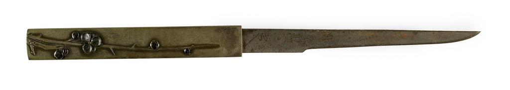| Keywords: Japanese - Kozuka with Plum Blossoms - Walters 5112734.jpg  A plum tree branch with blossoms and buds decorates this kozuka Plum blossoms are the first flower of spring This is part of a mounted set century 19 Edo-Meiji shibuichi sentoku cm 20 5 accession number 51 1273 4 79557 William T / Henry Walters Collection Baltimore date and mode of acquisition unknown Walters Art Museum Henry Walters Acquired by Willam T or Henry Walters none place of origin Japan Walters Art Museum license Kozuka in the Walters Art Museum Media contributed by the Walters Art Museum needs category review |
