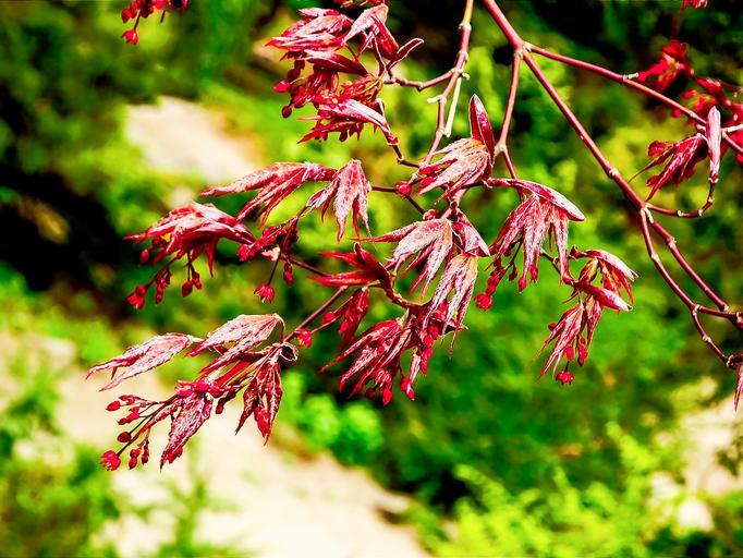 Keywords: japanese maple new growth new life bud spring red vibrant colorful tree foliage plant