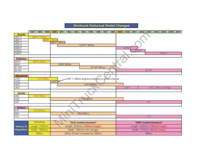 Keywords: Japanese mini truck.jpg Japanese mini truck productions by manufacturer and year models Own 071609 Minitrucksupply Tables information