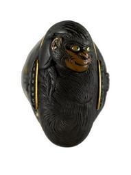 | Keywords: Japanese - Tsuka with Animals - Walters 5112443B - Mark A.jpg Three animals all of which appear regularly in Japanese folk tales are featured on this tsuka The kashira is in the shape of a monkey This is probably made by the same metalworker who made the accompanying fuchi because there is a folk tale about an encounter between a monkey and crab which is shown on the fuchi One menuki is in the shape of a badger The other is of a rabbit pounding rice cakes This is the figure said to be in the moon The tsuka is part of a mounted set 2nd half Other date century 19 Meiji brown lacquer iron ray skin gold copper cm 18 3 accession number 51 1244 3B 79266 William T / Henry Walters Collection Baltimore date and mode of acquisition unknown Walters Art Museum Henry Walters Acquired by William T or Henry Walters none place of origin Tokyo Japan Walters Art Museum license Tsuka in the Walters Art Museum Media contributed by the Walters Art Museum needs category review Media contributed by the Walters Art Museum needs artist review Reliefs of monkeys on Japanese sword fittings |