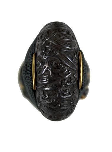 Keywords: Japanese - Tsuka with Waves, Horse, and Dragon - Walters 5111743B - Detail A.jpg Two menuki are tied onto the tsuka with silk cord One menuki shows a rider in Chinese style dress on a gold dragon On the opposite side the menuki depicts a horse and rider The waves on the kashira repeat the motif on the matching fuchi and kozuka This is part of a mounted set century 19 Edo-Meiji red gold and black lacquer ray skin silk gold silver cm 12 accession number 51 1174 3B 79325 William T / Henry Walters Collection Baltimore date and mode of acquisition unknown Walters Art Museum Henry Walters Acquired by William T or Henry Walters none place of origin Japan Walters Art Museum license Tsuka Media contributed by the Walters Art Museum needs category review |