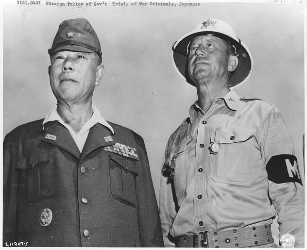 Keywords: Japanese War Crimes Trials. Manila - NARA - 292615.tif Scope and content YAMASHITA'S ARRAIGNMENT - Lt Gen Tomoyuki Yamashita the Tiger of Malaya is arraigned before the War Crimes Commission in Manila pleading not guilty He will be confined at New Bilibid Prison until his trial October 29 1945 in Manila Here Major Kenworthy Military Police prison officer delivers Gen Yamashita to the residence of the Philippine High Commissioner where Yamashita was held for arraignment in the first step of the war-crime trials to be held in the Pacific The arraignment was open to the public Yamashita was brought from his cell in New Bilibid Prison in an ambulance for security reasons General notes 292615 Local identifier Department of Defense Department of the Army Fort Leavenworth Kansas 09/18/1947 - NARA's Central Plains Region Kansas City NREA 400 West Pershing Road Kansas City MO 64108 other date circa 1945 1948 Record group Record Group 338 Records of U S Army Operational Tactical and Support Organizations World War II and Thereafter 1917 - 1999 Record group ARC 651 Ft Leavenworth Signal Corps Photograph Collection Equipment File compiled 1939 - 1965 Series ARC 292562 File unit File unit ARC Variant control numbers NAIL Control Number NRE-338-FTL EF -3161 15 yes Other versions <gallery> File Japanese_War_Crimes_Trials _Manila_-_NARA_-_292615 tif tif File Japanese_War_Crimes_Trials _Manila_-_NARA_-_292615 jpg jpg </gallery> NARA-cooperation PD-USGov Manila War Crimes Trials Tomoyuki Yamashita NARA TIF images with categorized JPGs |