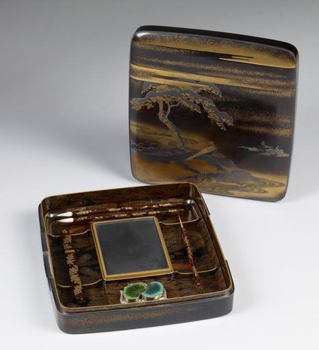 MAKE A MEME View Large Image Japanese - Writing Box and Implements (suzuri bako) with a Pheasant Beside a Stream - Walters 6775 - Open C.jpg Implements inside the box A rectangular inkstone with a depression for water is positioned in the center of the box On the right ...