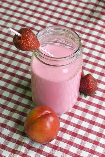 Keywords: jar smoothie drink shake peach strawberry diet health nutrition