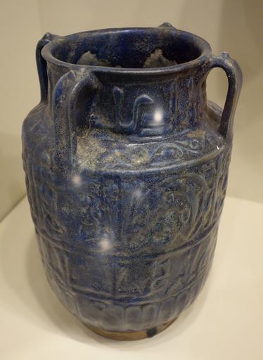Keywords: Jar with bands of calligraphic design, Iran, Seljuk period, late 12th or early 13th century, earthenware with molded relief decoration under a blue glaze - Cincinnati Art Museum - DSC04073.JPG en Exhibit in the Cincinnati Art Museum Cincinnati Ohio USA This artwork is in the public domain because the artist died more than 70 years ago Photography was permitted in the museum without restriction 2013-05-14 11 25 23 own Daderot cc-zero Seljuk pottery in the Cincinnati Art Museum Uploaded with UploadWizard |