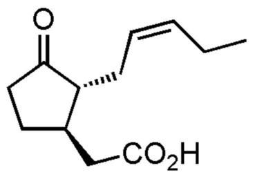 Keywords: Jasmonic acid.png Structure of Jasmonic acid Source Selfmade Date 4 Aug 2006 Made with ChemDraw 2006-08-04 own assumed Su-no-G Jasmonates