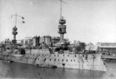 | Keywords: Jaureguiberry 1915 AWM J06004.jpeg AWM caption Port Said Egypt c 1915 The French Battleship Jaureguiberry at anchor Her hull is painted a light grey while the turrets are very dark grey or black Note the extreme tumblehome of the hull The dominant fighting tops and thick military masts common to French battleships completed in the 1890s J06004 Donated by Mr J A Henderson ~ 1915 photographer not identified Copyright expired - public domain PD-AustraliaGov Jauréguiberry ship 1893 Black and white photographs |