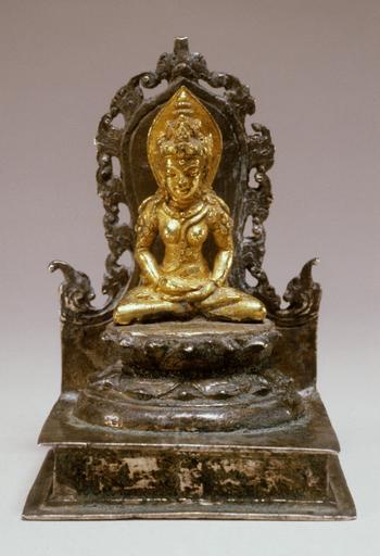 | Keywords: Javanese - The Buddhist Goddess Tara - Walters 572282.jpg Adopting a sophisticated form of Mahayana great vehicle Buddhism from monastic centers in northern and northeastern India Javanese Buddhists created images of the Buddha as well as of members of the Buddhist pantheon Tara helps extend the powers of the Buddha-to-be Avalokiteshvara but she is frequently worshiped as an independent deity-a savior who helps convey the rays of Avalokiteshvara's compassion to the suffering beings of this world century 9 gold silver cm 9 2 accession number 57 2282 35047 Cylia and William G Siedenburg New York New York date and mode of acquisition unknown Walters Art Museum Gift of The Cylia and William G Siedenburg Foundation 2001 place of origin Central Java Indonesia Walters Art Museum license Southeast Asian art in the Walters Art Museum Sculptures from Java Media contributed by the Walters Art Museum needs category review |