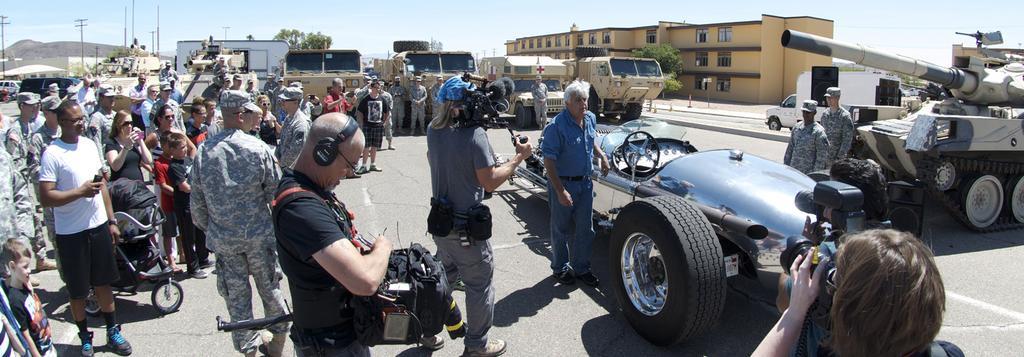 | Keywords: weed army community hospital weedarmycommunityhospital wach fort irwin fortirwin jay leno jayleno national training center nationaltrainingcenter ntc jay leno's garage jaylenosgarage wrmc meddac FORT IRWIN, California - Jay Leno, formerly the host of the "Tonight Show" visits Fort Irwin Soldiers during a brief stop-over while touring through the Mojave Desert taping a segment for his show "Jay Leno's Garage". While on post Leno was the guest of Fort Irwin Garrison Commander Col. Jonathan Braga. Leno met with Fort Irwin service members and family members as well as Weed Army Community Hospital Soldier and civilian staff Monday, June 1, and thank them for their service to the country. Leno has been a great supporter of U.S. Army service members and the National Training Command (NTC) throughout his career and has visited the installation on previous occasions. The Weed Army Community Hospital (WACH) on Fort Irwin is part of the United States Army Medical Department Activity, better known to service members by its acronym MEDDAC. The hospital staff provides 24/7 support to the National Training Center (NTC), one of the largest U.S. Army training areas in the continental United States area with over 1,000 square miles of maneuver areas, state of the art training facilities and ranges, with airspace restricted to military use. The nature of care provided at the Weed Army Community Hospital focuses on primary care, as well as occasional severe trauma. The facility has a highly trained staff of professional care providers to include specialists in general surgery, orthopedics, pediatrics, obstetrics and gynecology, internal medicine, family practice, mental health, and a flight surgeon. A physical therapist, a dietician, and optometrist complement the staff of professional health care providers. Photo by Michael Beaton, Weed Army Community Hospital Public Affairs. (Released). FORT IRWIN, California - Jay Leno, formerly the host of the "Tonight Show" visits Fort Irwin Soldiers during a brief stop-over while touring through the Mojave Desert taping a segment for his show "Jay Leno's Garage". While on post Leno was the guest of Fort Irwin Garrison Commander Col. Jonathan Braga. Leno met with Fort Irwin service members and family members as well as Weed Army Community Hospital Soldier and civilian staff Monday, June 1, and thank them for their service to the country. Leno has been a great supporter of U.S. Army service members and the National Training Command (NTC) throughout his career and has visited the installation on previous occasions. The Weed Army Community Hospital (WACH) on Fort Irwin is part of the United States Army Medical Department Activity, better known to service members by its acronym MEDDAC. The hospital staff provides 24/7 support to the National Training Center (NTC), one of the largest U.S. Army training areas in the continental United States area with over 1,000 square miles of maneuver areas, state of the art training facilities and ranges, with airspace restricted to military use. The nature of care provided at the Weed Army Community Hospital focuses on primary care, as well as occasional severe trauma. The facility has a highly trained staff of professional care providers to include specialists in general surgery, orthopedics, pediatrics, obstetrics and gynecology, internal medicine, family practice, mental health, and a flight surgeon. A physical therapist, a dietician, and optometrist complement the staff of professional health care providers. Photo by Michael Beaton, Weed Army Community Hospital Public Affairs. (Released). |