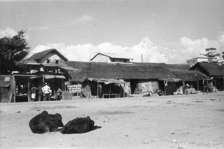 | Keywords: airfield bank batti commerce tea shop teashop transportation nepal blackandwhite monochrome outdoor building architecture black and white Date: 1969 Location: Pokhara, Kaski Description: Tea shops and Nepal Rastra Bank next to the Pokhara airport. Date: 1969 Location: Pokhara, Kaski Description: Tea shops and Nepal Rastra Bank next to the Pokhara airport. |