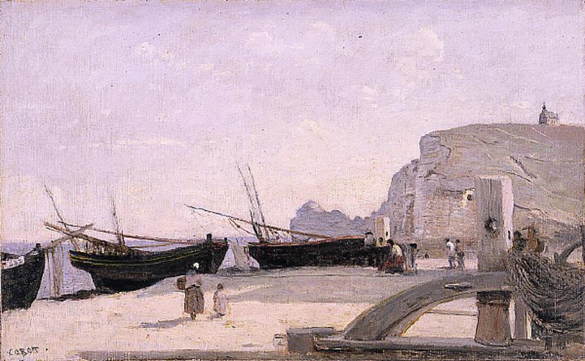 View Original:Jean-Baptiste-Camille_Corot_-_The_Beach,_Étretat.jpg (600x371)
