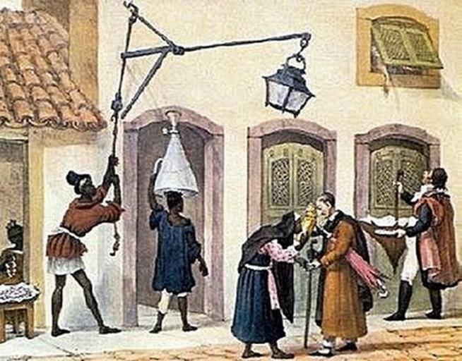 | Keywords: Jean-Baptiste Debret Coleta de esmolas para irmandades (acendedor de lampiões).png Jean-Baptiste Debret Coleta de esmolas para as irmandades; nesta imagem vê-se um negro contribuindo com dinheiro a um padre e uma mão da janela da casa também enquanto diversos escravos que exerciam profissões remuneradas para rendimento de seus senhores são retratas como plano de fundo da esquerda para a direita um vendedor ambulante um acendedor de lampião e um entregador de água http //1 bp blogspot com/_Pm7-jSt3kos/R7K8ejIC_DI/AAAAAAAAAbk/2oIxOA8O2Rw/s400/1-debret jpg circa 1820 Creator Jean-Baptiste Debret PD Old PD-old-100 Lanterns in art 1820 ca History of lighting 1820 ca Street lights in art 1820 ca 19th-century paintings Paintings and drawings of black slaves by Jean-Baptiste Debret |