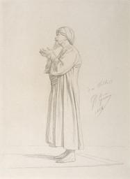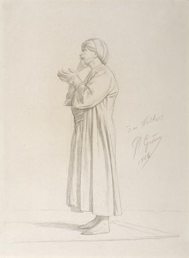 Keywords: Jean-Léon Gérôme - Arab Standing in Prayer - Walters 371305.jpg Arab Standing in Prayer shows an aged man on a prayer mat with his eyes uplifted and his hands open in a gesture of intense devotion The drawing is related to one of Gérôme's most successful compositions the painting Prayer on the Rooftops Hamburg Kunsthalle on which he worked in the early 1860s and which he showed at the Salon of 1865 Gérôme represented a group of men on a rooftop in Cairo at sunset all facing east in prayer and all at different stages in their worship with some standing some seated and some prostrate against the sky and minarets behind 1864 graphite on cream moderately thick slightly textured wove paper cm 28 9 22 3 accession number 37 1305 18219 William T Walters city Baltimore from the artist Henry Walters city Baltimore Walters Art Museum Henry Walters Acquired by William T Walters 1864 à M Walters/J L Gérôme 1864 in graphite center right The Essence of Line A Connoisseur's Portfolio The Orientalists The Walters Art Gallery Baltimore 1987-1988 Botanical Delights Floral Motifs in 19th-Century Art Strathmore Hall Art Center North Bethesda; Academy of the Arts Easton Easton; Government House Annapolis 1998-1999 A Discerning Eye Nineteenth-century Drawings and Watercolors Academy of the Arts Easton Easton 1998-1999 place of origin France Walters Art Museum license 2D A Connoisseur's Portfolio The Essence of Line Drawings by Jean-Léon Gérôme Drawings in the Walters Art Museum Islamic prayers in art |