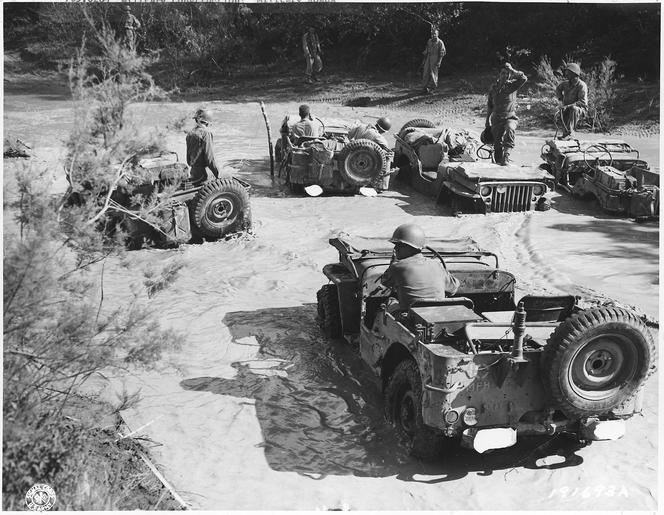 Keywords: Jeeps crossing rain swollen stream in Italy - NARA - 292563.tif Scope and content Photo shows vehicles crossing rain swollen stream A few minutes before the rain the stream was only a few inches deep Fifth Army Volterra Sector Italy July 9 1944 General notes 292563 Local identifier Department of Defense Department of the Army Fort Leavenworth Kansas 09/18/1947 - NARA's Central Plains Region Kansas City NREA 400 West Pershing Road Kansas City MO 64108 1944 Record group Record Group 338 Records of U S Army Operational Tactical and Support Organizations World War II and Thereafter 1917 - 1999 Record group ARC 651 Ft Leavenworth Signal Corps Photograph Collection Equipment File compiled 1939 - 1965 Series ARC 292562 File unit File unit ARC Variant control numbers NAIL Control Number NRE-338-FTL EF -205 1 yes Other versions <gallery> File Jeeps_crossing_rain_swollen_stream_in_Italy_-_NARA_-_292563 tif tif File Jeeps_crossing_rain_swollen_stream_in_Italy_-_NARA_-_292563 jpg jpg </gallery> NARA-cooperation PD-USGov Italian Campaign World War II Willys MB during World War II History of Volterra Fording water obstacles NARA TIF images with categorized JPGs |