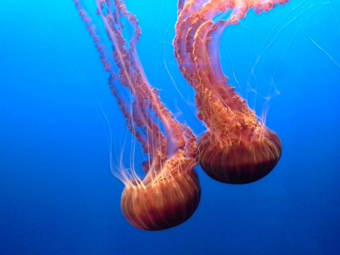 Keywords: jellyfish aquarium beautiful water underwater wildlife jelly creature orange monterey bay aquarium