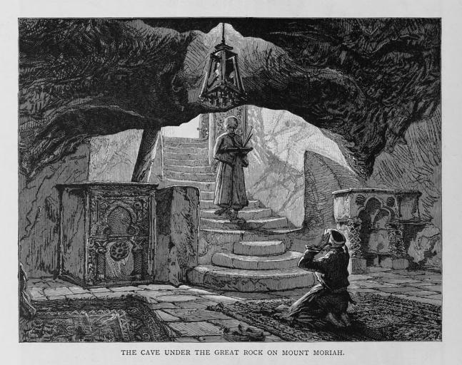 | Keywords: Jerusalem dome of rock 2 1880.jpg smallcaps the cave under the great rock on mount moriah Picturesque Palestine Sinai and Egypt Vol I p 60 New York D Appleton Co 1881 An engraving based on a sketch or watercolor by Harry Fenn 1877 “79 PD-old-100 PD-old Historic Images of the Dome of Rock Picturesque Palestine Sinai and Egypt Harry Fenn Jerusalem in the 1870s |