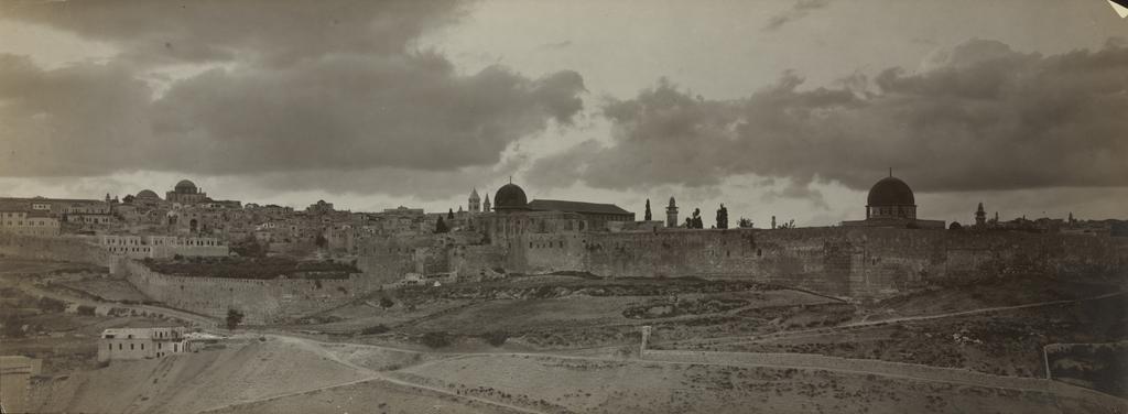 | Keywords: Jerusalem panorama early twentieth century.jpg en View of Jerusalem from southeast showing city walls the Dome of the Rock and al-Aqsa mosque Information field Notes Medium 1 photographic print gelatin silver ; 21 x 51 cm 8 x 20 in Reproduction Number LC-DIG-ppmsca-18902 digital file from original item Rights Advisory No known restrictions on publication Call Number LOT 13892 no 4 item P P Repository Library of Congress Prints and Photographs Division Washington D C 20540 USA http //hdl loc gov/loc pnp/pp print Title devised by Library staff based on information for similar image LC-M32- P-4 Stamped on verso no 252 Accession number 2006 051 2 Forms part of Visual materials from the papers of John D Whiting Library of Congress html LOC-image ppmsca 18901 between 1900 1940 American Colony Jerusalem Photo Dept photographer Jerusalem_panorama early twentieth century2 jpg PD-Matson Panoramic views from the Mount of Olives Historical images of Jerusalem |