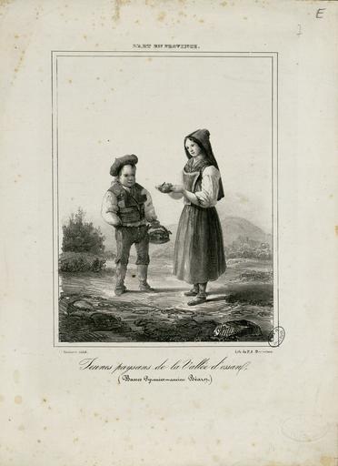 | Keywords: Jeunes paysans de la Vallée d'Ossan (i.e. Ossau) (Basses-Pyrénées, ancien Béarn) - Fonds Ancely - B315556101 A GELIBERT 4 007.jpg Fait partie d'un recueil de dessins de Gélibert datés de 1835 ou de 1838 et lithographiés chez Desrosiers à Moulins Ancely René 1876 - 1966 Possesseur fre public domain domaine public B315556101_A_GELIBERT_4_007 jpg image/jpeg 1 lith en n et b ; 32 cm Desrosiers P A 18 -18 ; imprimeur Editeur http //numerique bibliotheque toulouse fr/collect/general/index/assoc//ark /74899/B315556101_A_GELIBERT_4_007 dir/B315556101_A_GELIBERT_4_007 jpg Bibliothèque municipale de Toulouse A-GELIBERT 4-7 Creator Paul-Jean-Pierre Gélibert http //catalogues toulouse fr/web2/tramp2 exe/do_keyword_search/log_in setting_key BMT1 servers 1home query p000593 Le Pas de l'Echelle - Gorge de Luz à Gavarnie Hautes-Pyrénées Ruines du Château de Mauvezin Hautes-Pyrénées Avignonet Haute-Garonne Cascade du Garet Hautes-Pyrénées Eglise de l'ancien monastère de St Savin dans la Vallée d'Orgelès i e Argelès Hautes-Pyrénées Vue de la Vallée de Campan prise du Château de Beaudean Hautes-Pyrénées Ruines du Château de Beaucens Vallée d'Argelez Hautes Pyrénées Pont de Sia Chemin de St Sauveur à Gavarnie Hautes-Pyrénées vignette http //numerique bibliotheque toulouse fr/collect/general/index/assoc//ark /74899/B315556101_A_GELIBERT_4_007 dir/B315556101_A_GELIBERT_4_007_thumb jpeg between 1835 1838 Jeunes paysans de la Vallée d'Ossan i e Ossau Basses-Pyrénées ancien Béarn B315556101_A_GELIBERT_4_007 lithography - print Vallée d'Ossau History of clothing Skirts in art Béarn Girls from France in art Berets Food-related equipment Gaiters French national costumes Caps in art Children in art Paul-Jean-Pierre Gélibert Boys of France Shawls Shoes in art People with baskets in art |