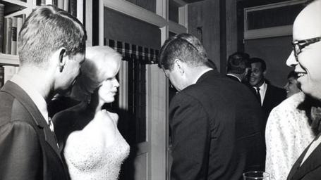 | Keywords: JFK and Marilyn Monroe 1962.jpg U S President John F Kennedy with his back to the camera U S Attorney General Robert Kennedy far left and actress Marilyn Monroe on the occasion of President Kennedy's 45th birthday celebrations at Madison Square Garden in New York City Arthur M Schlesinger Jr is at the far right Facing the camera in the rear appears singer Harry Belafonte http //www cnn com/2010/SHOWBIZ/06/01/marilyn monroe birthday photo/index html; first version uploaded was from http //www pbs org/wgbh/roadshow/fts/orlando_200702A13_09 html 1962-05-19 Cecil W Stoughton official White House photographer PD-USGov 1962 in New York City John F Kennedy in 1962 Black and white photographs of people Marilyn Monroe Photographs by Cecil W Stoughton Robert F Kennedy Arthur M Schlesinger Jr Harry Belafonte ImageNote 1 72 35 94 122 465 315 2 Robert Kennedy ImageNoteEnd 1 ImageNote 2 236 45 128 102 465 315 2 John F Kennedy ImageNoteEnd 2 ImageNote 3 405 5 59 193 465 315 2 Arthur M Schlesinger Jr ImageNoteEnd 3 ImageNote 4 165 65 56 108 465 315 2 Marilyn Monroe ImageNoteEnd 4 ImageNote 5 368 79 29 45 465 315 2 Harry Belefonte ImageNoteEnd 5 ImageNote 6 31 11 133 216 640 360 2 Robert F Kennedy ImageNoteEnd 6 ImageNote 7 173 98 83 126 640 360 2 Marilyn Monroe ImageNoteEnd 7 ImageNote 8 309 68 130 144 640 360 2 John F Kennedy ImageNoteEnd 8 ImageNote 9 485 113 58 70 640 360 2 Harry Belafonte ImageNoteEnd 9 ImageNote 10 564 2 75 231 640 360 2 Arthur M Schlesinger Jr ImageNoteEnd 10 |