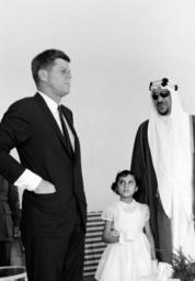 | Keywords: JFKWHP-ST-39-2-62.jpg President John F Kennedy visits Saud bin Abdul-Aziz Al Saud King of Saudi Arabia at the residence of Jean Flagler Gonzalez where King Saud stayed following a surgery in the United States King Saud ™s daughter Princess Dalal stands at center Palm Beach Florida 1962-01-27 National Archives of America http //www jfklibrary org/Asset-Viewer/Archives/JFKWHP-ST-39-2-62 aspx Photographer Stoughton Cecil W Cecil William 1920-2008 other versions PD-USGov Saud of Saudi Arabia Dalal bint Saud John F Kennedy with national leaders |