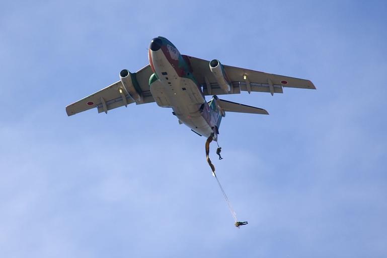 | Keywords: JGSDF paratrooper & C-1.JPG JGSDF 1st Airborne Brigade paratrooper is dropping from JASDF Kawasaki C-1 cargo aircraft Taken by Los688 in Narashino Japan on 7-Jan-2007 JGSDF 1st Airborne Brigade 2007 first drop manuver ja 陸上自衛隊 第1空挺団の降下 C-1輸 機から 2007-01-07 own assumed Los688 Kawasaki C-1 Static line parachuting Paratroopers 1st Airborne Brigade Japan |