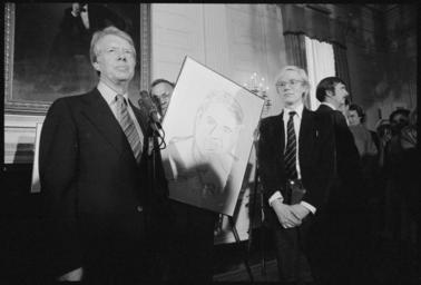Keywords: Jimmy Carter with Andy Warhol during a reception for inaugural portfolio artists., 06-14-1977 - NARA - 175147.tif Local identifier President 1977-1981 Carter White House Staff Photographers 01/20/1977 - 01/20/1981 Jimmy Carter Library NLJC 441 Freedom Parkway Atlanta GA 30307-1498 1977-06-14 Record group Collection JC-WHSP Carter White House Photographs Collection 01/20/1977 - 01/22/1981 Record group ARC 1120 Carter White House Photographs Presidential compiled 01/20/1977 - 01/22/1981 Series ARC 173341 Variant control numbers NAIL Control Number NLC-WHSP-C-01726-16 General notes Scope and content File unit 3-11 Drop-By White House Conference on HIRE; 12-37 Receptionfor the Inaugural Portfolio Artists 06/14/1977 - 06/14/1977 File unit ARC 175146 yes Other versions <gallery> File Jimmy Carter Andy Warhol 1977 jpg JPG version File Jimmy Carter Andy Warhol 1977 png PNG version </gallery> NARA-cooperation PD-USGov Jimmy Carter Andy Warhol June 1977 in the United States NARA TIF images with categorized JPGs Portfolios |