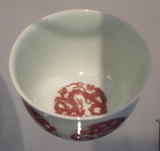 | Keywords: Jingdezhen cup, China, Qing dynasty, Kangxi period, 1762-1722, porcelain, underglaze red - Royal Ontario Museum - DSC03828.JPG en Exhibit in the Royal Ontario Museum Toronto Ontario Canada This work is old enough so that it is in the public domain Photography was permitted in the museum without restriction 2013-10-08 14 00 50 own Daderot cc-zero Jingdezhen porcelain in the Royal Ontario Museum Uploaded with UploadWizard | ||||
