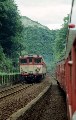 Keywords: JNR DC Exp Ashizuri.jpg 行あしずり スイッチバック駅にて S56-08-12 owne photo h-tori S56-08-12 ライセンス放棄 1981 in rail transport in Japan Ashizuri train JNR Kiha 58 series Tsubojiri Station