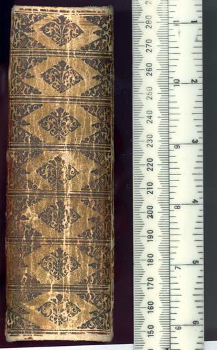 | Keywords: Joannis Barclaii Argenis, figuris aeneis adillustrata, suffixo clave, hoc est nominum propriorum explicatione, atque index locupletissimo. (Noribergae - impensis B.W.M. Endteri consortium, e - Spine (RB23a28487).jpg Style Peasant floral coloured vellum; Caption Spine; Colour White / cream; Edge Unspecified exhibition history Decorative Technique Tooled in blind Tooled in alloy frequently gold and silver zwischen gold ; Cover Material Parchment For details see upper cover object history Text 1740; Unspecified; Unspecified object type Cc-zero place of creation Binding Germany place of discovery Unspecified British Library image http //www bl uk/catalogues/bookbindings/LargeImage aspx RecordId 020-000011478 ImageId ImageId 45344 Copyright BL Joannis Barclaii Argenis figuris aeneis adillustrata suffixo clave hoc est nominum propriorum explicatione atque index locupletissimo Noribergae impensis B W M Endteri consortium et vid B Jul Arnold Engelbrechti ca 1740 Uploaded with GWToolset Joannis Barclaii Argenis figuris aeneis adillustrata suffixo clave hoc est nominum propriorum explicatione atque index locupletissimo Noribergae impensis B W M Endteri consortium e - Spine RB23a28487 http //www webarchive org uk/bldatasets/bindings/12409_3 jpg Bookbinding 18th-century bookbinding British Library Bookbindings |