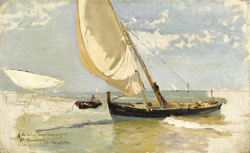 | Keywords: Joaquin Sorolla y Bastida - Estudio de Playa.jpg Artwork Creator Joaquín Sorolla 1894-96 oil canvas cm 23 3 35 object history Sra Semprún a gift from the artist in 1906 ; thence by descent to the present owner credit line A la Señora de mi buen amigo el / Dr Semprun / J Sorolla y Bastida ~ lower left signature accession number http //www sothebys com/de/auctions/ecatalogue/2009/19th-century-european-paintings-including-german-austrian-central-european-paintings-the-orientalist-sale-spanish-painting-and-the-scandinavian-sale-l09661/lot 86 html Sotheby's London 03 Juni 2009 lot 86 PD-old-auto-1923 1923 DEFAULTSORT Joaquín Sorolla - Playa escena con figuras y toros Paintings of boats by Joaquín Sorolla Images from Sotheby's |