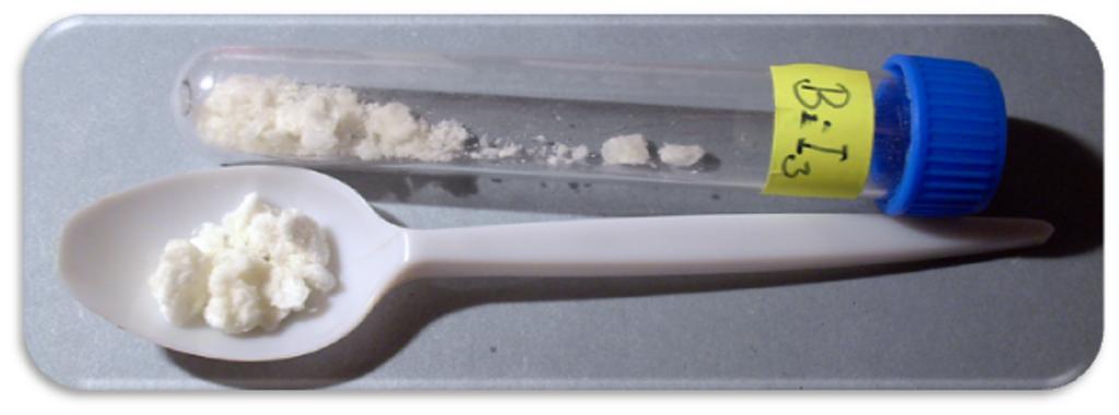 Keywords: Jodid bismutitý.PNG Jodid bismutitý - BiI3 own 2007-06-24 Ondřej Mangl Není nutno Bismuth iodide Samples of inorganic compounds