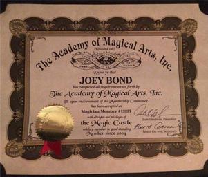 | Keywords: Joey Bond Magician - Magic Castle Certification.jpg Tai Chi master Joey Bond is a child hood friend of Michael Laucke This Tai Chi program was the longest running How To series on the PBS Network and could be viewed from 1994-2002 He is also an accomplished Magician/Mentalist a graduate of the prestigious Magic Castle in Hollywood California Here is the certification which he proudly gave to Michael Laucke's company to photograph Note for copyright purposes this photo was taken by an employee who was also a photographer hired by Michael Laucke It is a work for hire owned and paid for by Michael Laucke It is hereby licensed under Public Domain Dedication CC0 ; ALL RIGHTS WAIVED https //www flickr com/photos/michael-laucke/24016228150/ Joey Bond Magician - Magic Castle Certification 2016-01-11 01 28 https //www flickr com/people/136915188 N08 Michael Laucke cc-zero Michael Laucke https //flickr com/photos/136915188 N08/24016228150 2016-01-11 10 10 52 cc-zero Michael Laucke Cc-zero |